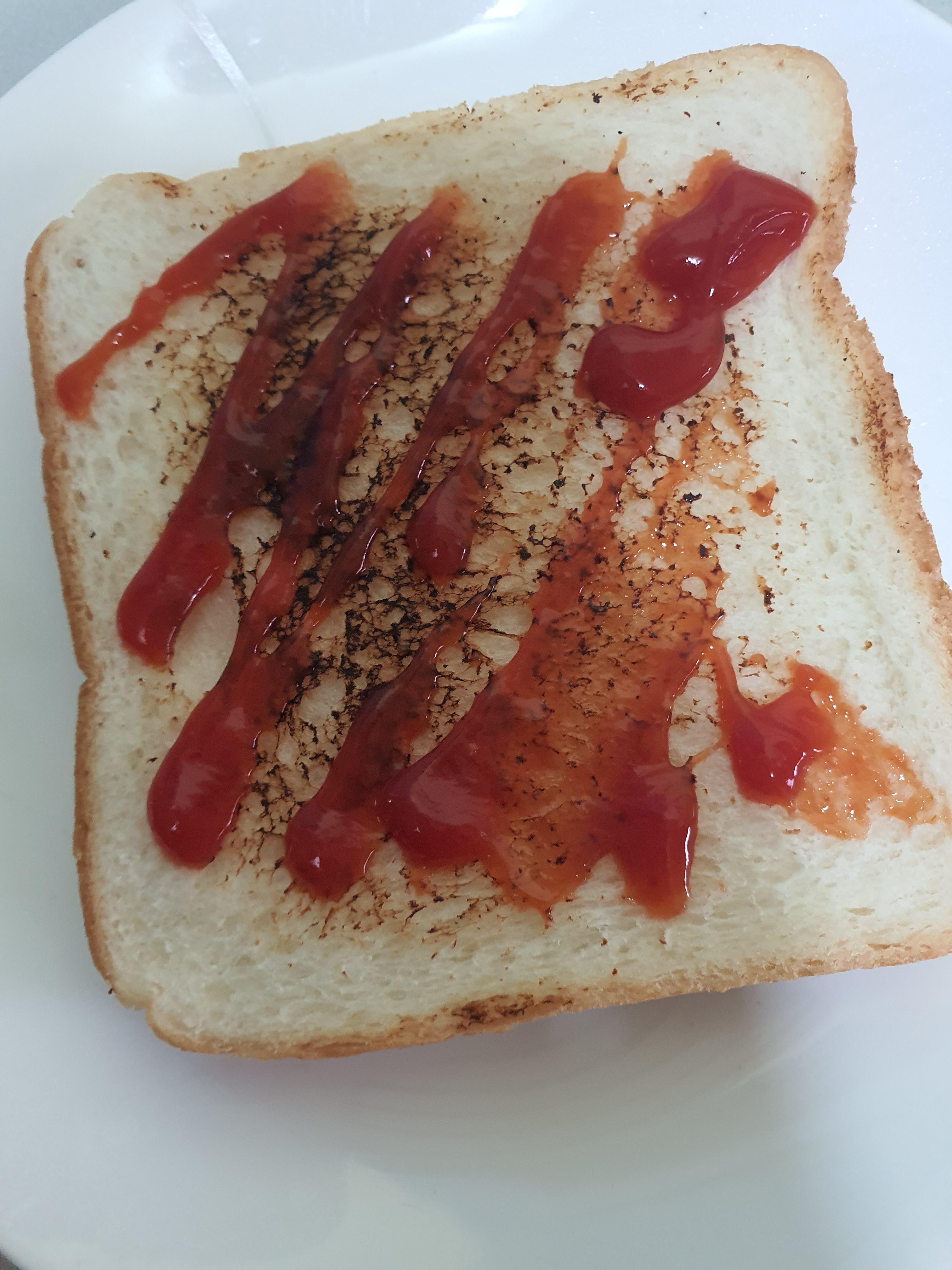 빵을 후라이팬에 노릇노릇하게 빵을 구워 놓으시고 난 후 우리가 햄거거나 치킨 주문해서 먹을때 따라오는 캐찹을 찾아 놓으세요