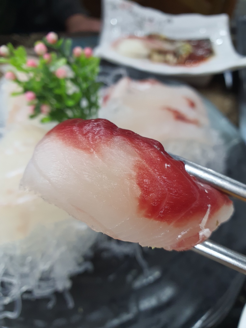 회정식에 나온 회는 광어와 숭어입니다 봄이면 보리숭어 제철이잖아요