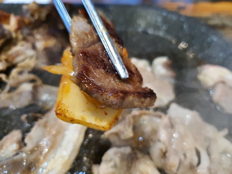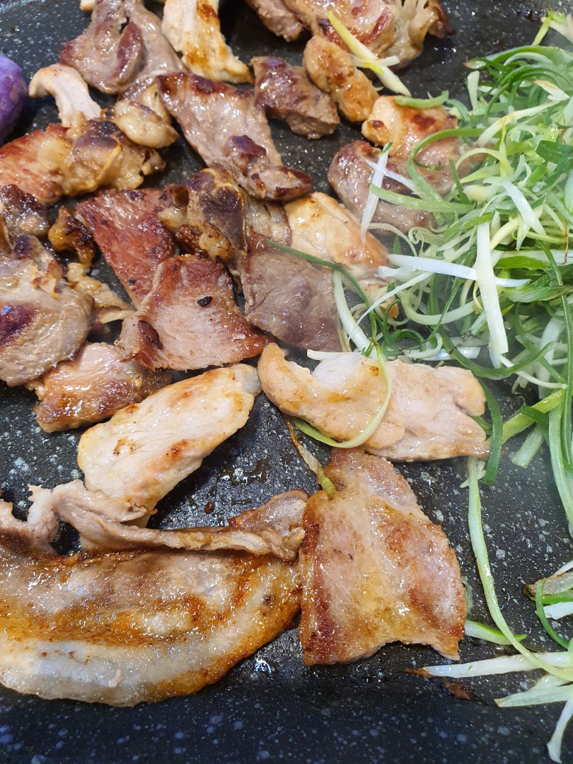 고기가 너무 익어서 탄 거처럼 보이네요 흥미 그래도 맛있으니 그냥 먹었습니다