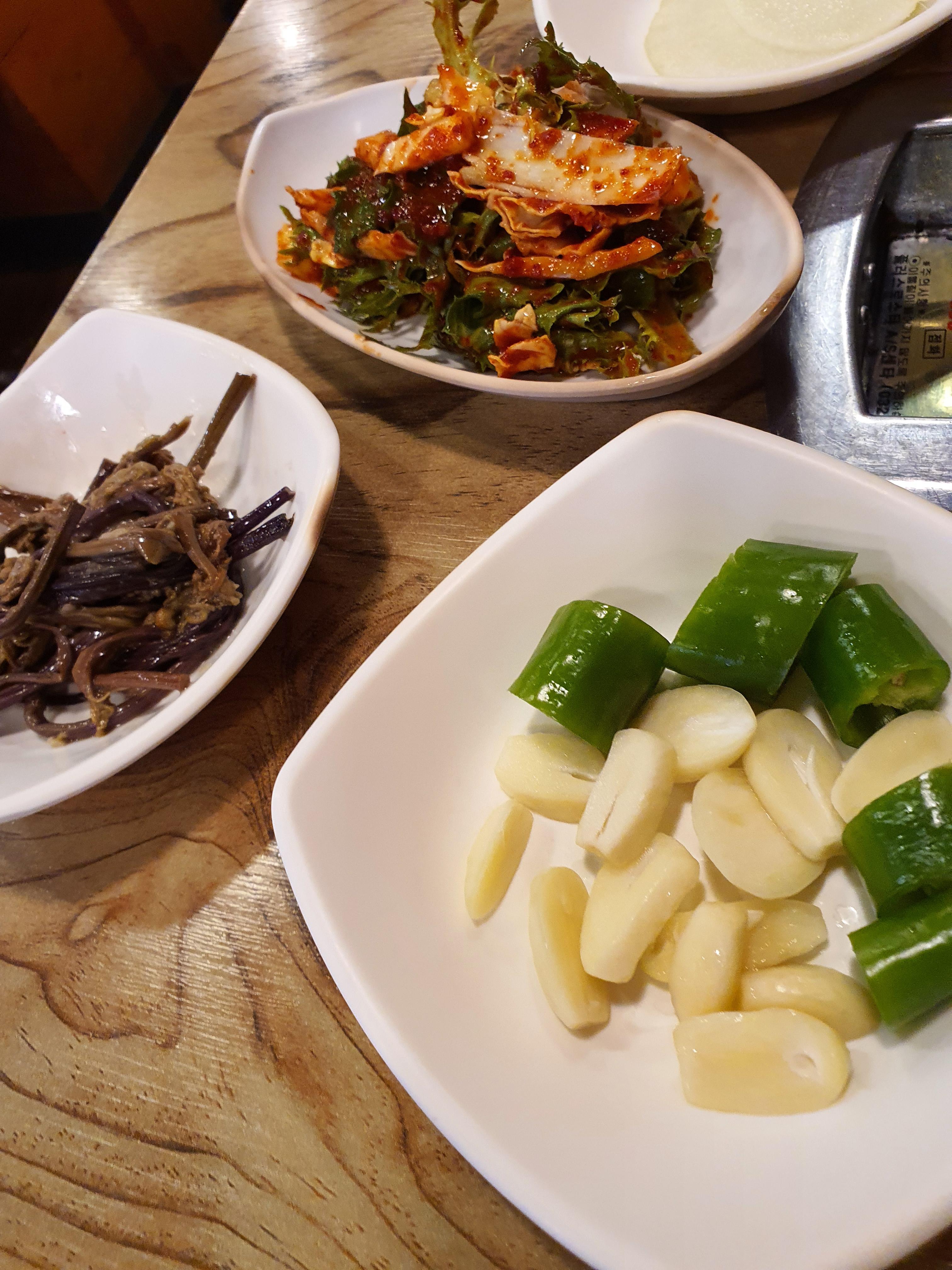 상추와 마늘 고추까지 넣어서 쌈으로 먹으면