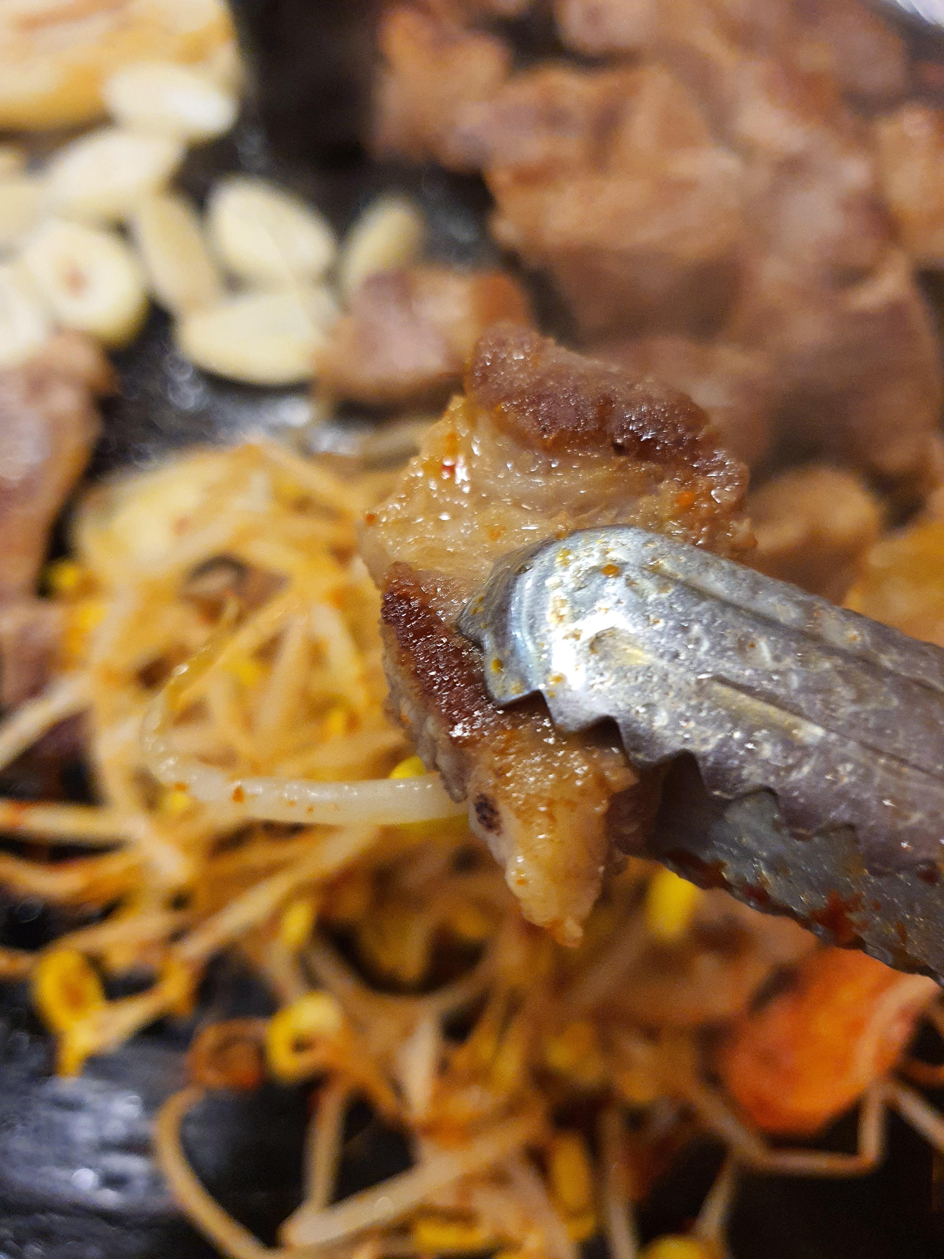 점심이지만 점심은 솥뚜껑 위에 지글지글 목살을 구워서 김치와 콩나물까지 먹으면 정말 꿀맛이랍니다