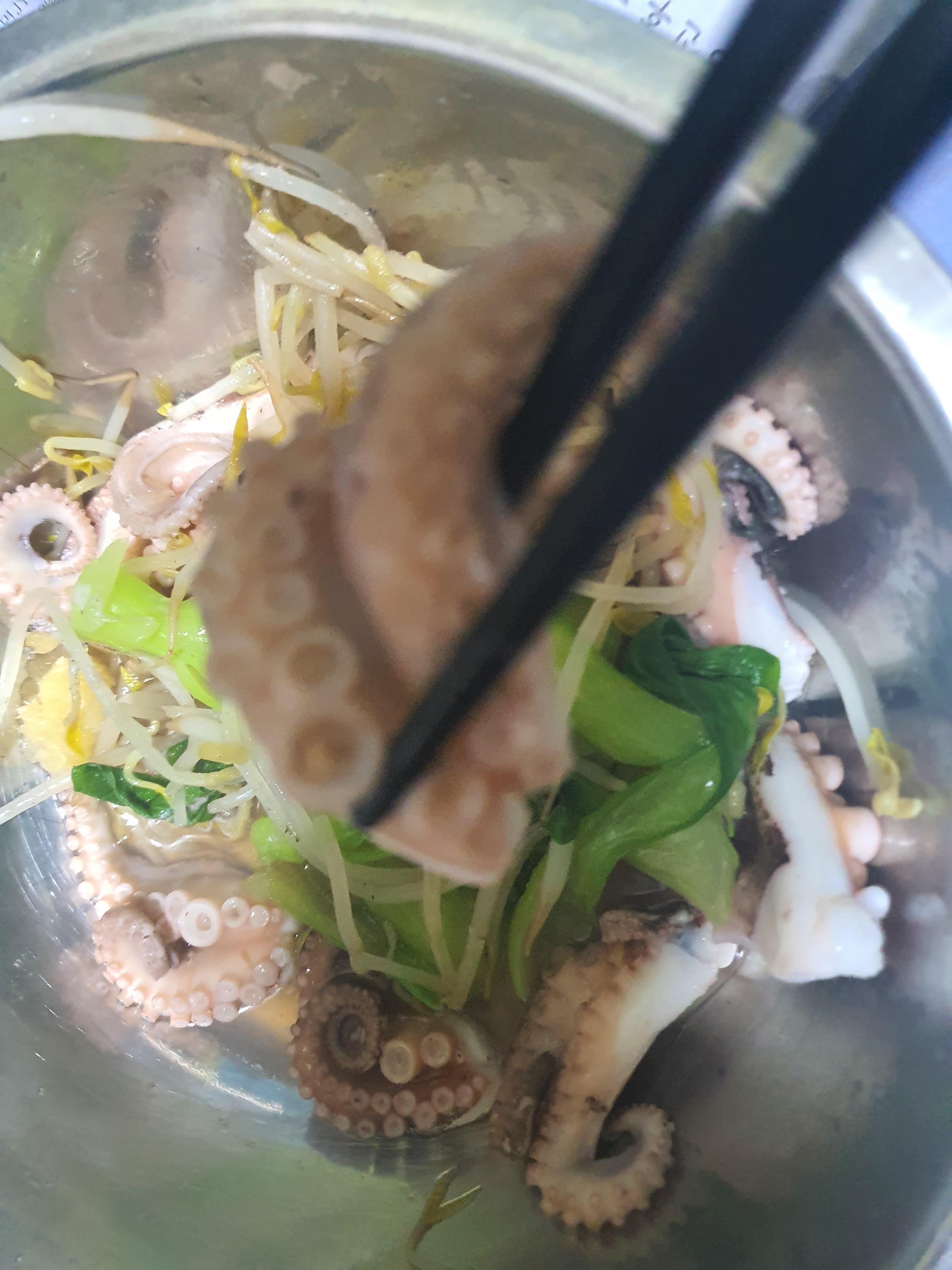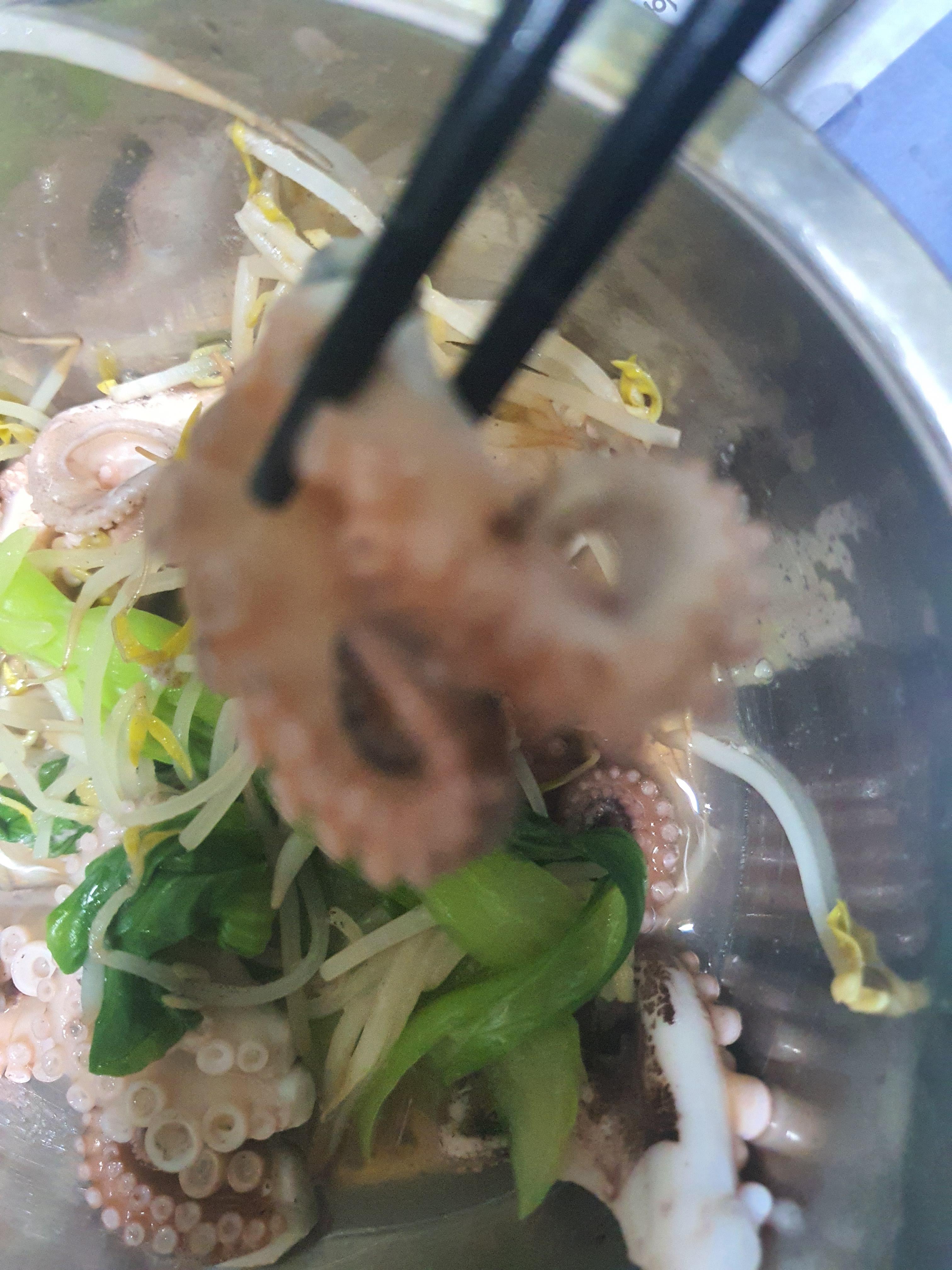 육수는 야채에서 나오니 다시마와 멸치만 일단 넣고 끓인 후 싱싱한 쭈꾸미를 넣어서 살짝만 익혀서 먹어야 합니다