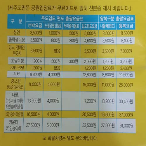 제주도 여행 우도 배 요금은 선박요금 3,500원에 도립공원입장료 1,000원이