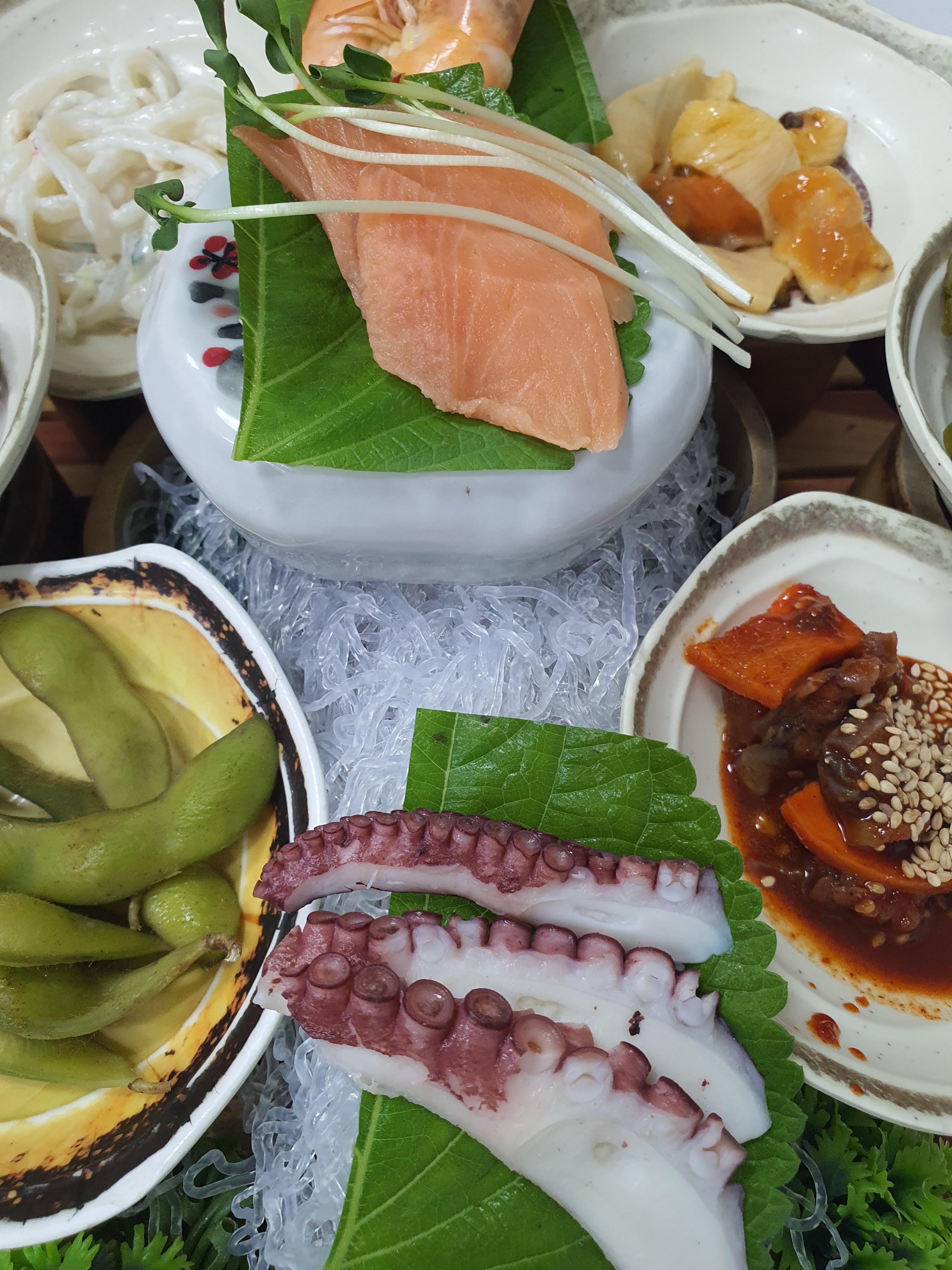 메인 회가 나왔는데 회보다 사이드로 나온 음식들이 더 맛있어 보이는 착각이 들기도 하지만 역시 회죠