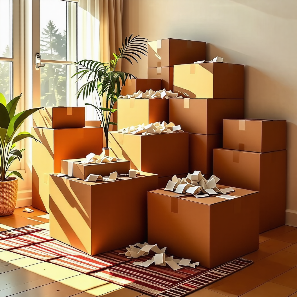 4. **이사 박스 준비**: 박스, 테이프, 에어캡, 라벨 등 포장에 필요한 도구를 준비하세요.
