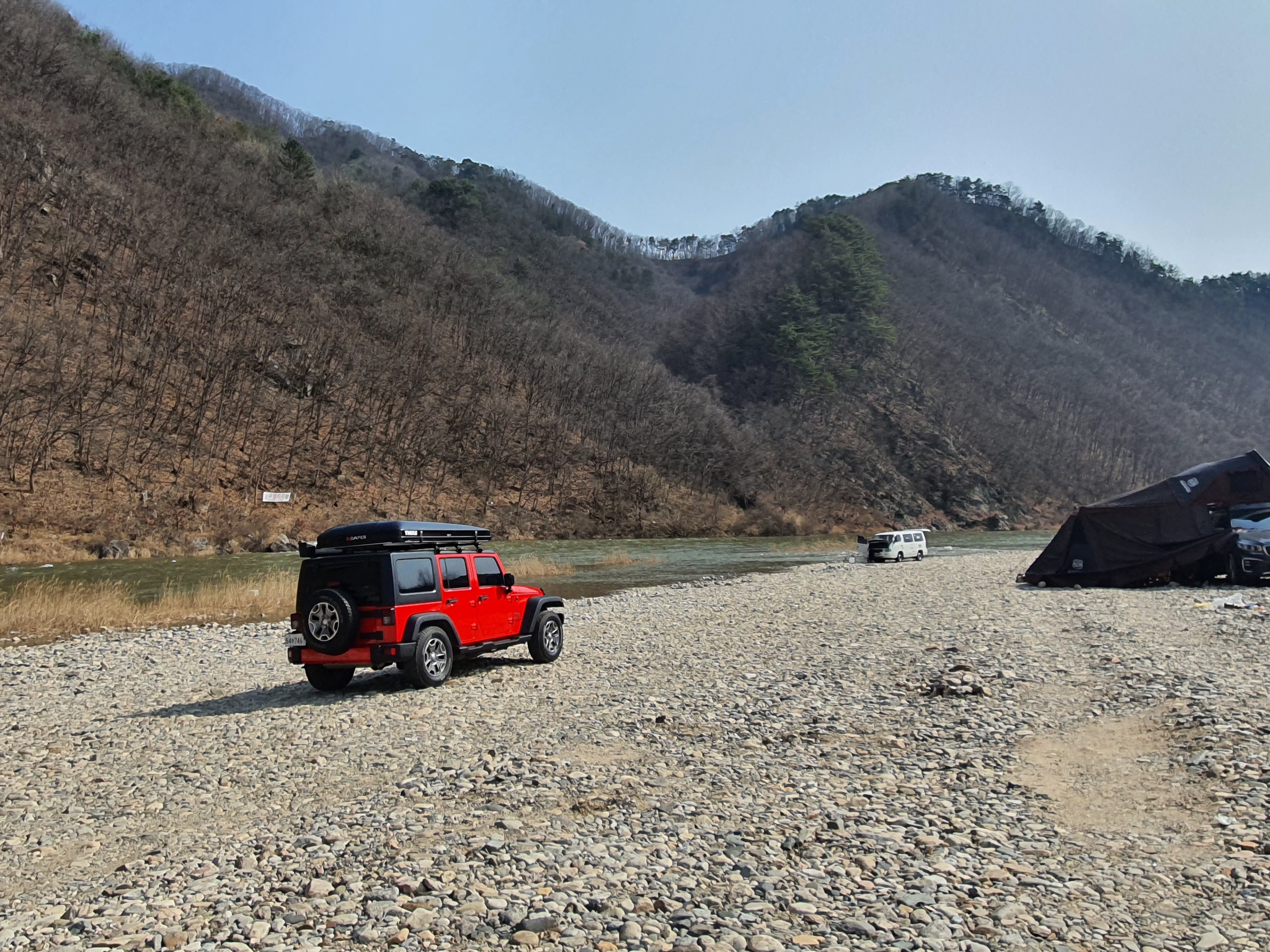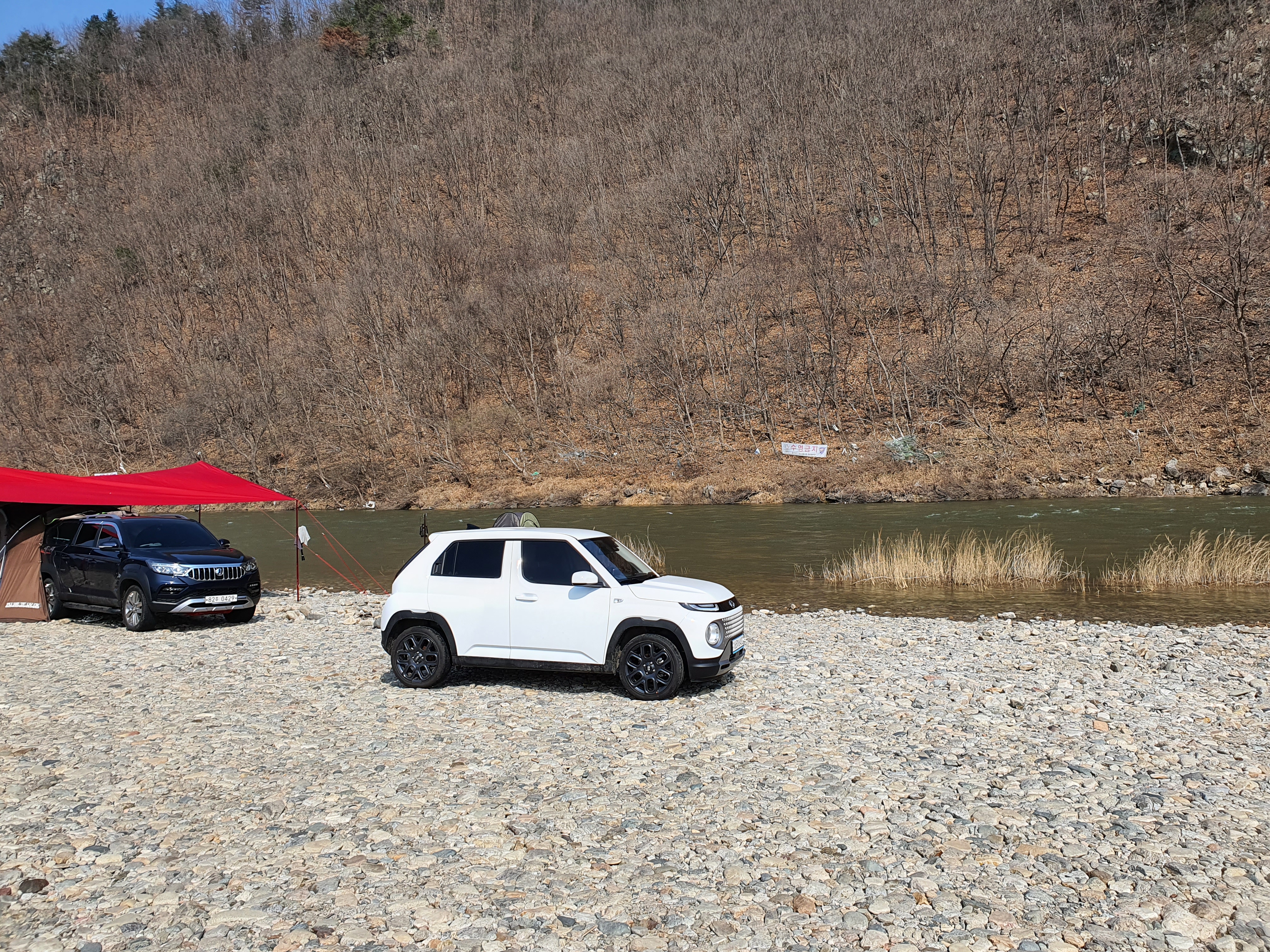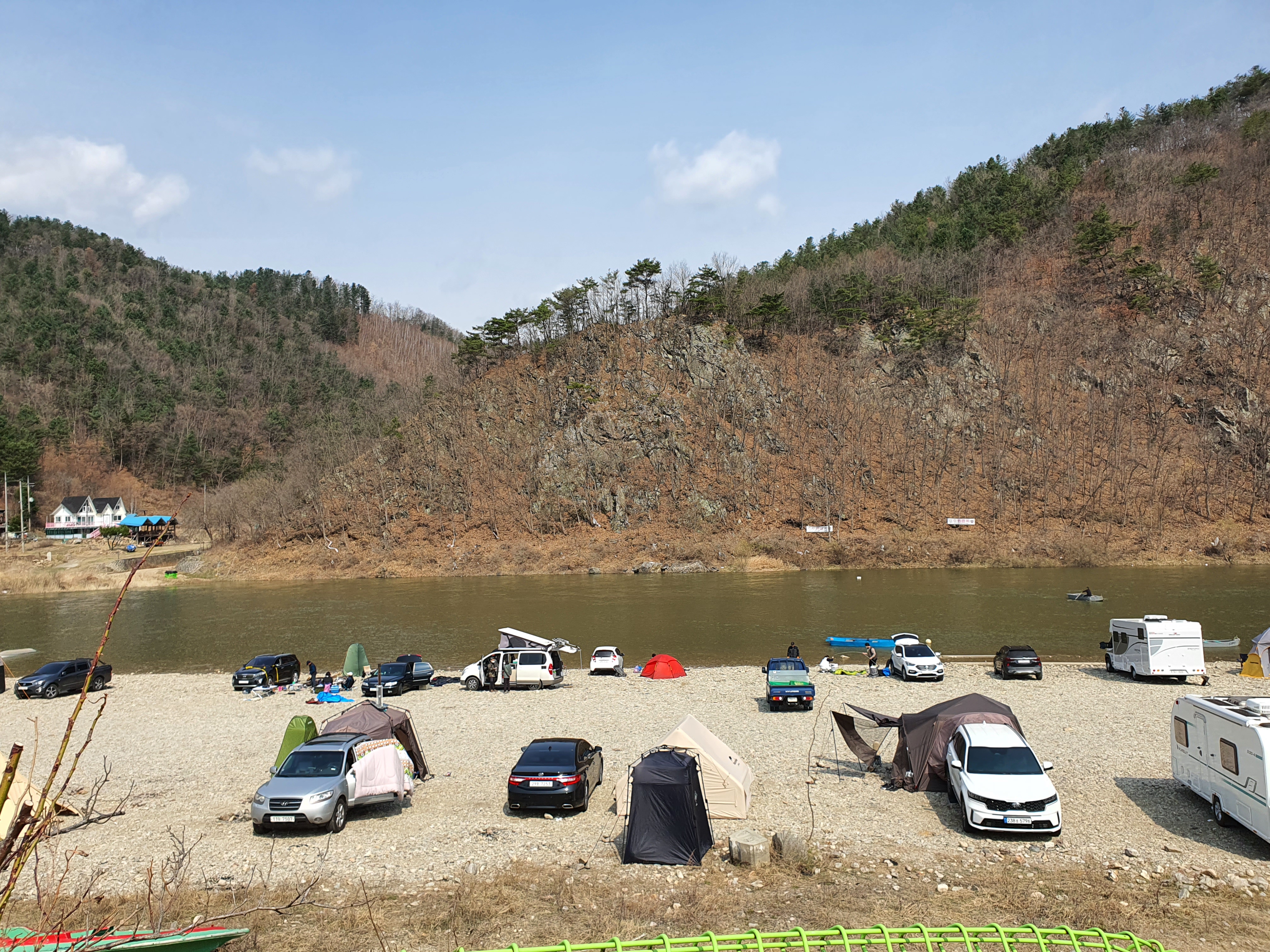 강원도 홍천강 모곡유원지에서는 차박과 캠핑을 하시는 분들이 많습니다