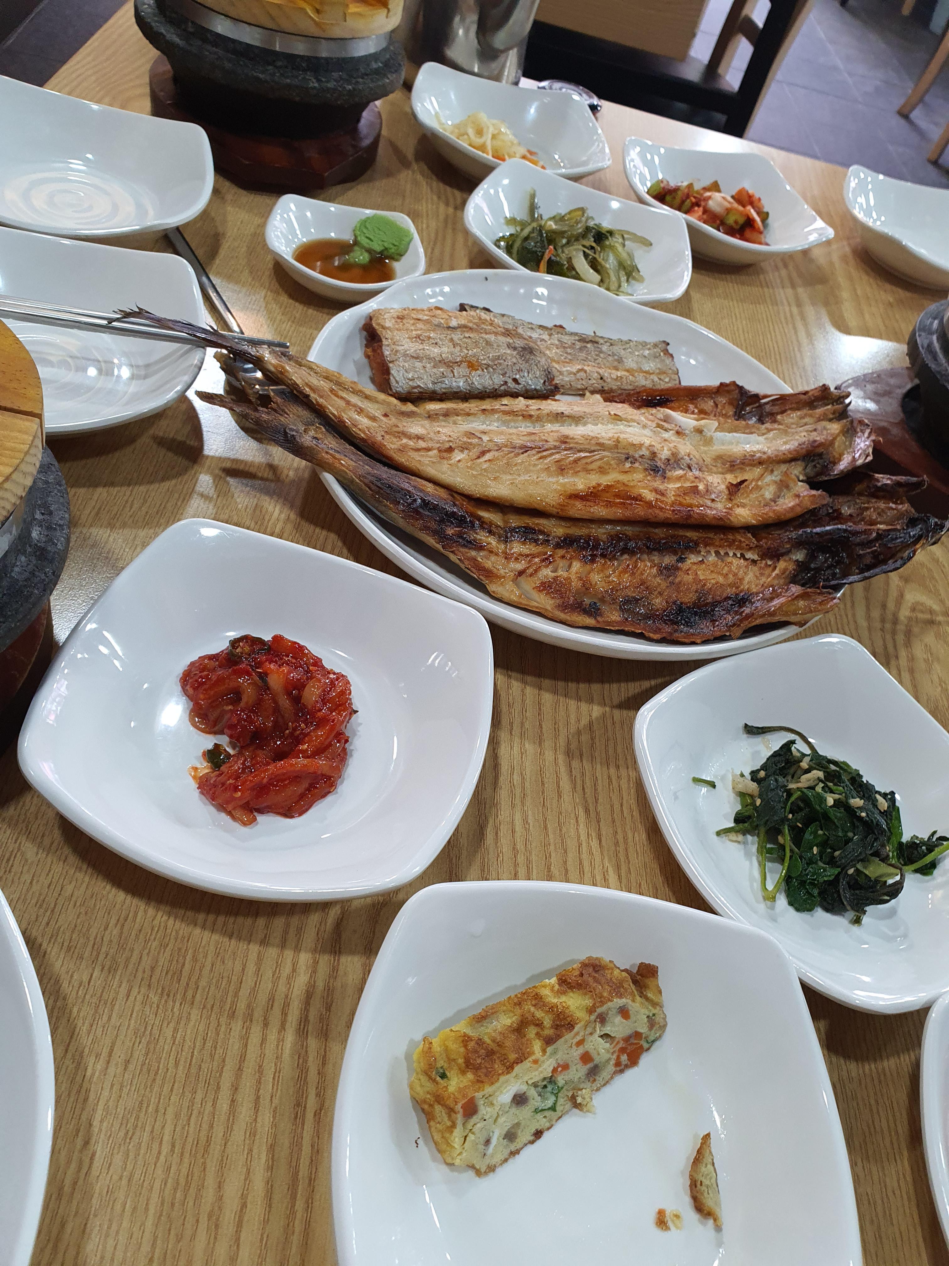생선구이 모듬으로 갈치, 고등어, 삼치구이 3종류가 나오는데 오븐에 생선을 구워서 일까 생선의 기름기는 짝 빠지고 담백 고소하니 맛이 일품이었습니다