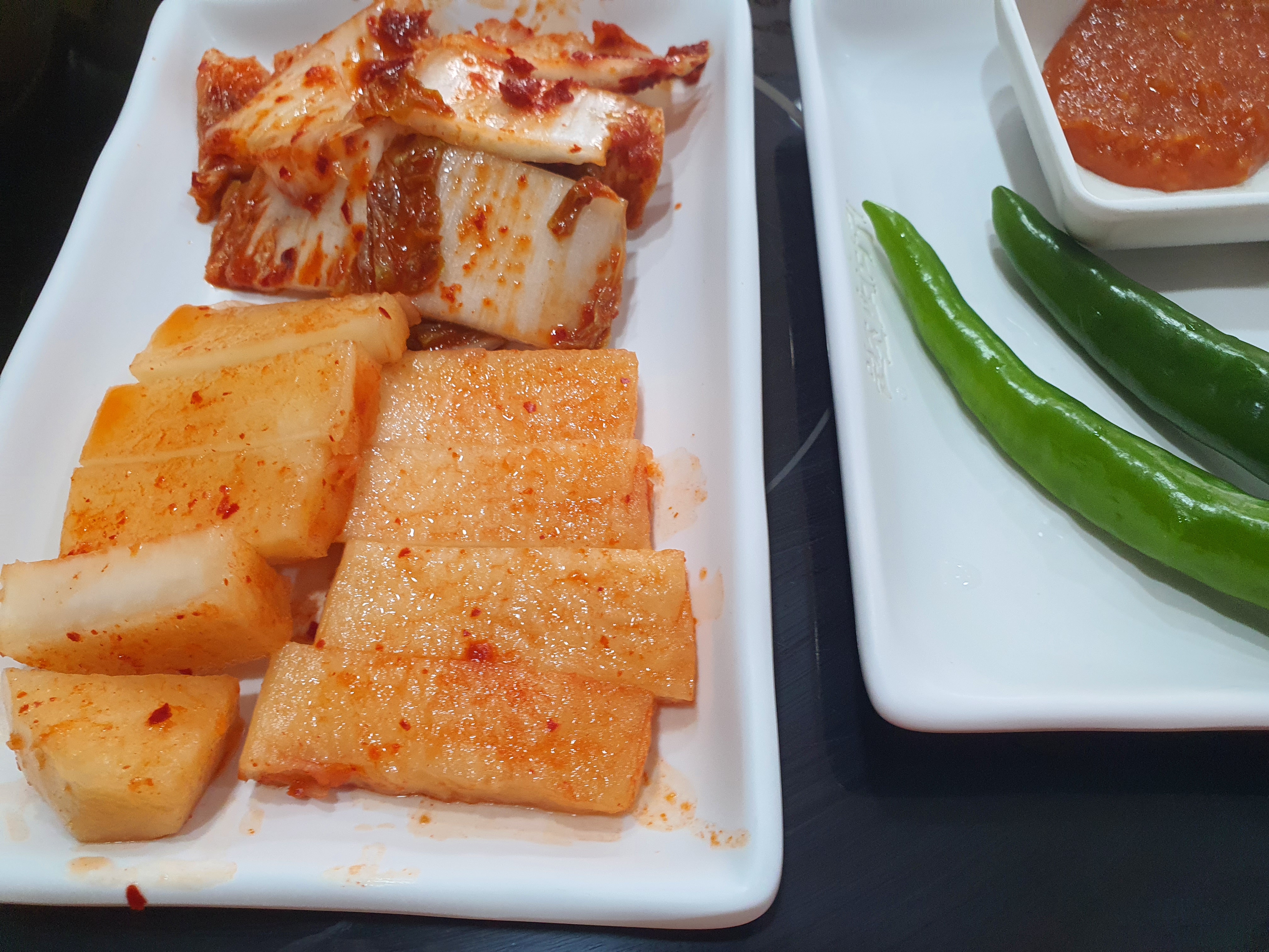 나오는 배추김치와 고추, 깍두기 모두 남긴 없이 다 먹었답니다