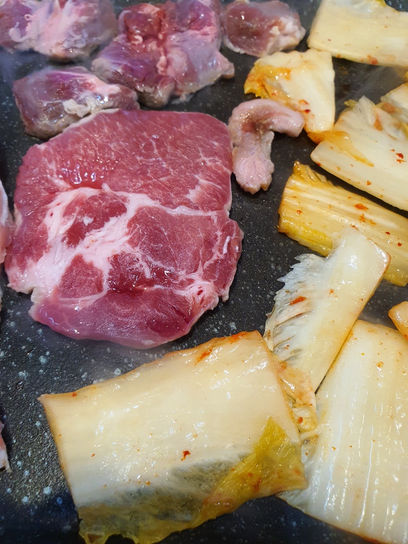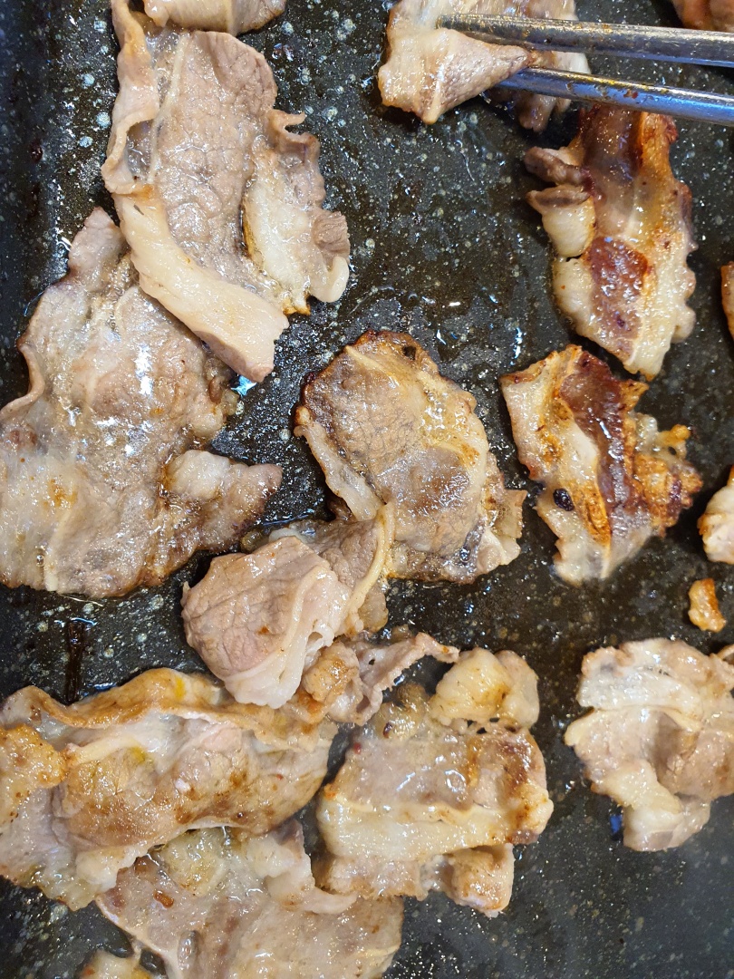 고기가 너무 익어서 탄 거처럼 보이네요 흥미 그래도 맛있으니 그냥 먹었습니다