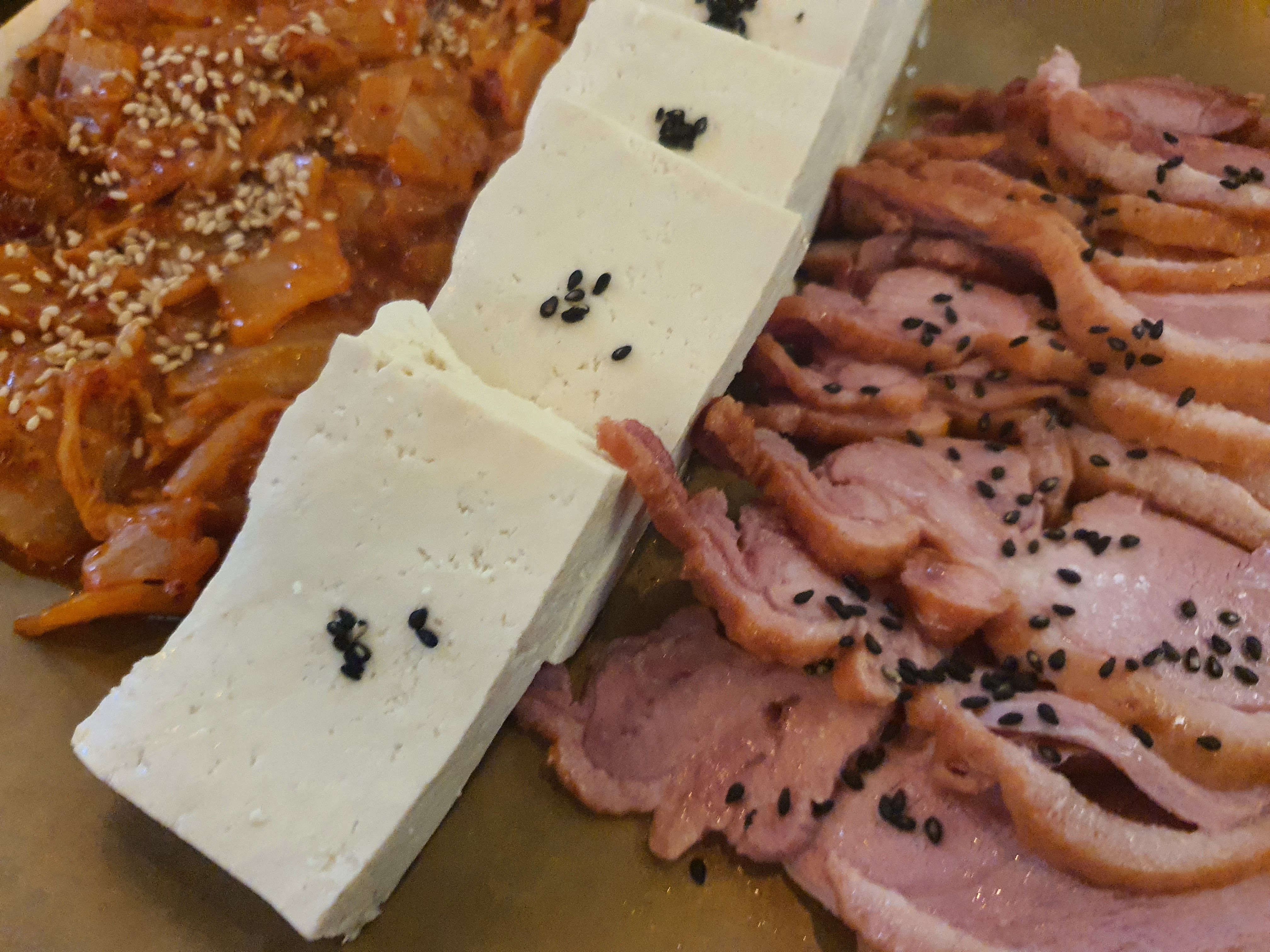 오리 두부 김치 삼합 이것은 제가 좋아하는 메뉴입니다 담백한 두부와 오리 그리고 김치까지 3가지 음식의 조화가