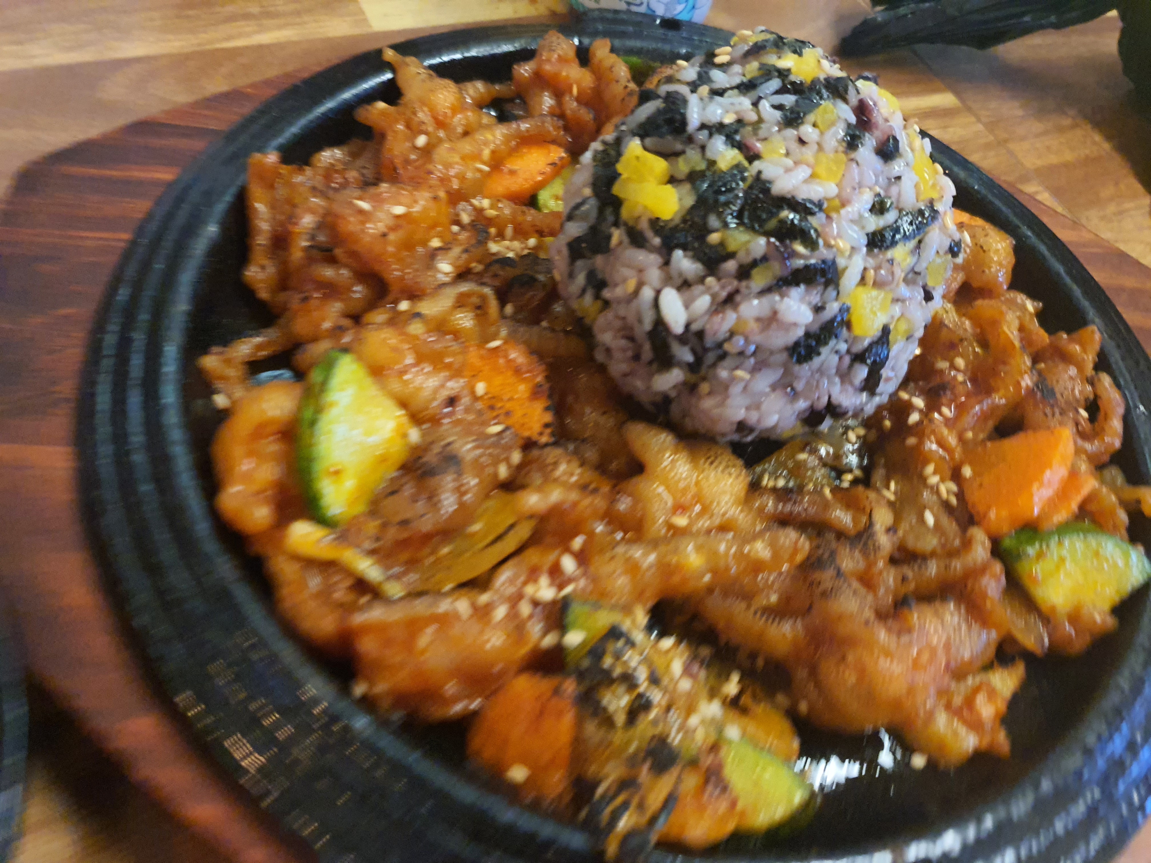뼈 없는 닭발을 주문하면 주먹밥 한 개가 올라가 있어서 따로 공깃밥이나 밥 종류를 주문하지 않아도 됩니다
