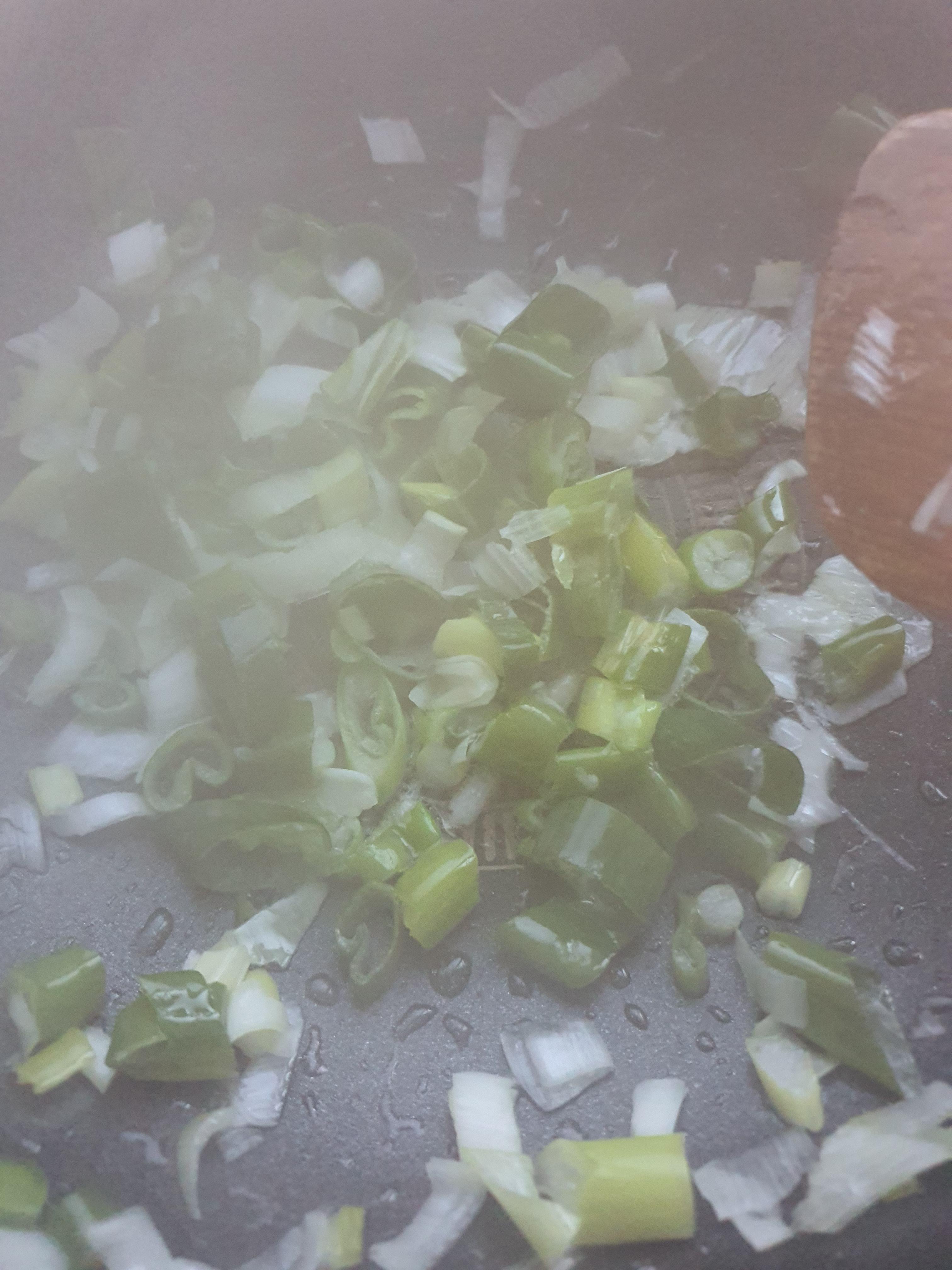 지글지글 잘 만들어지고 있는데 이대로 익혀서 먹어도 맛있지만 대파볶음밥 이기에 밥을 넣어서 볶아야합니다