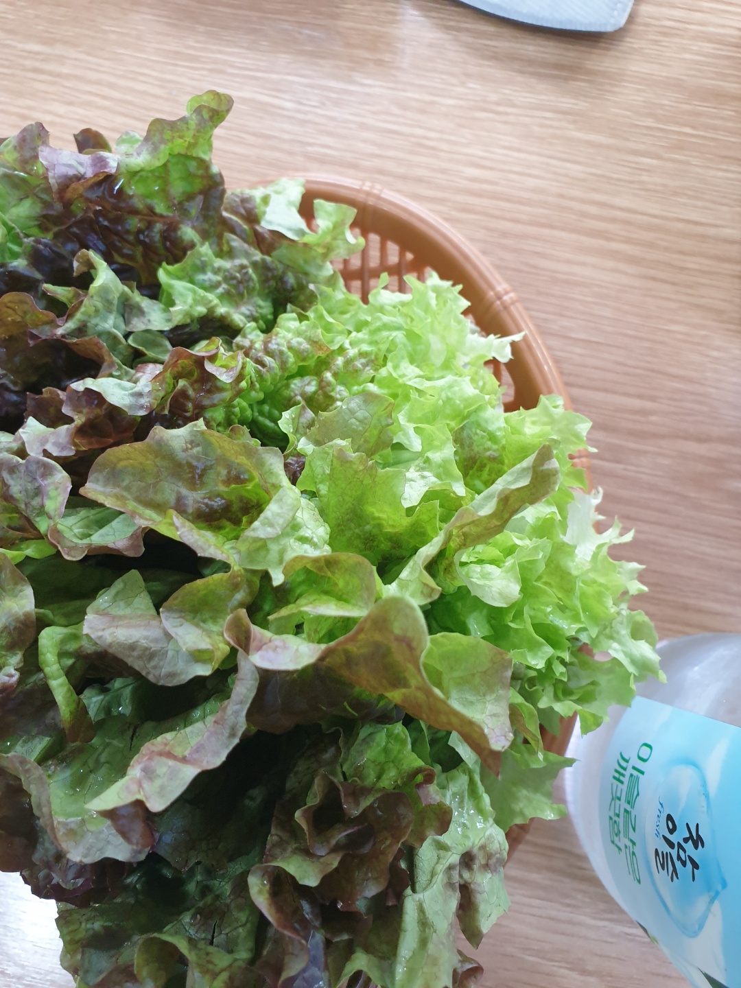 제육은 상추에 밥과 고기 고추와 마늘을 올려서