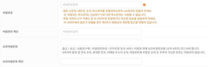 비밀번호 2번 적으시고 보안 비밀번호도 적으시고요