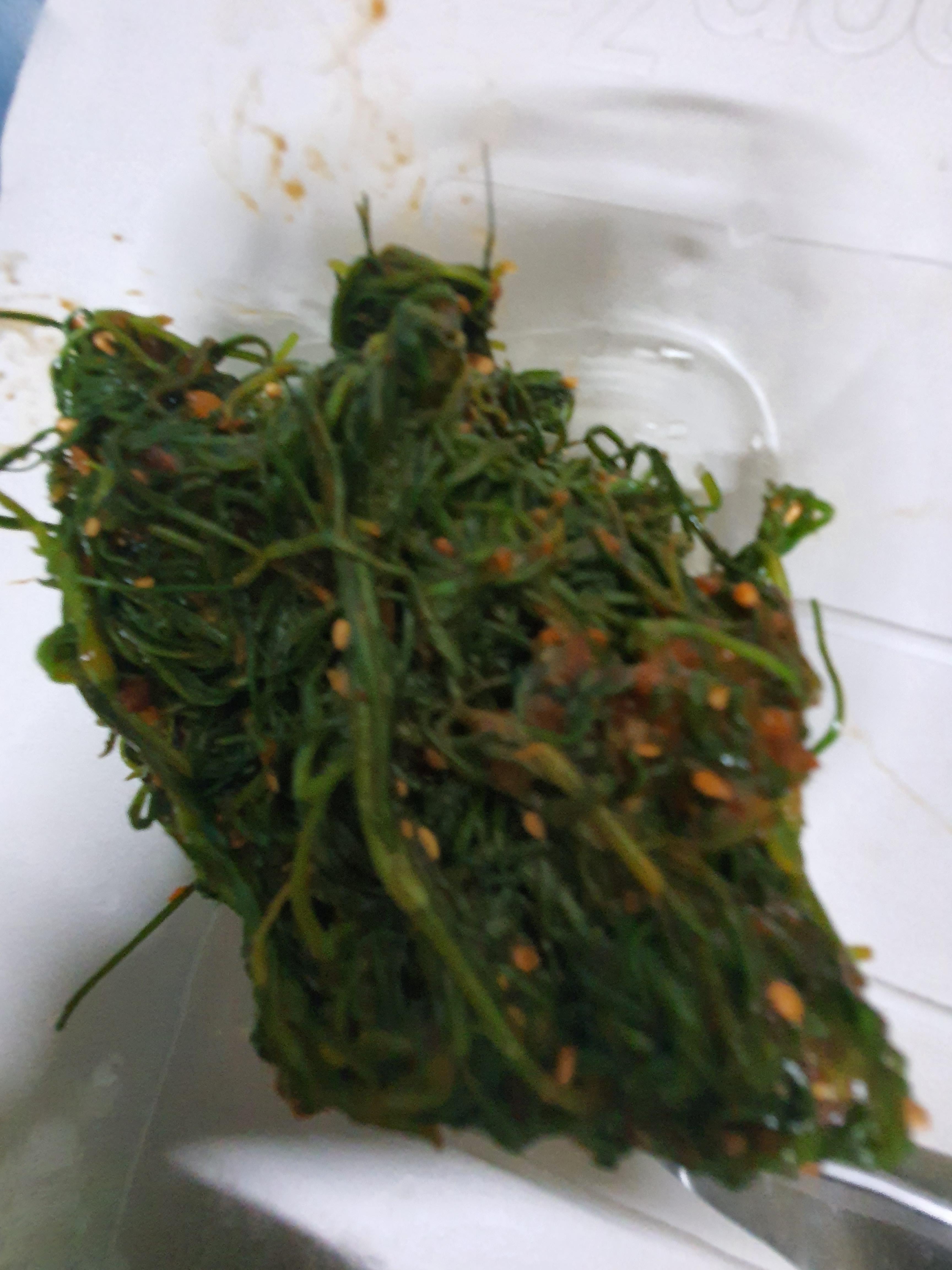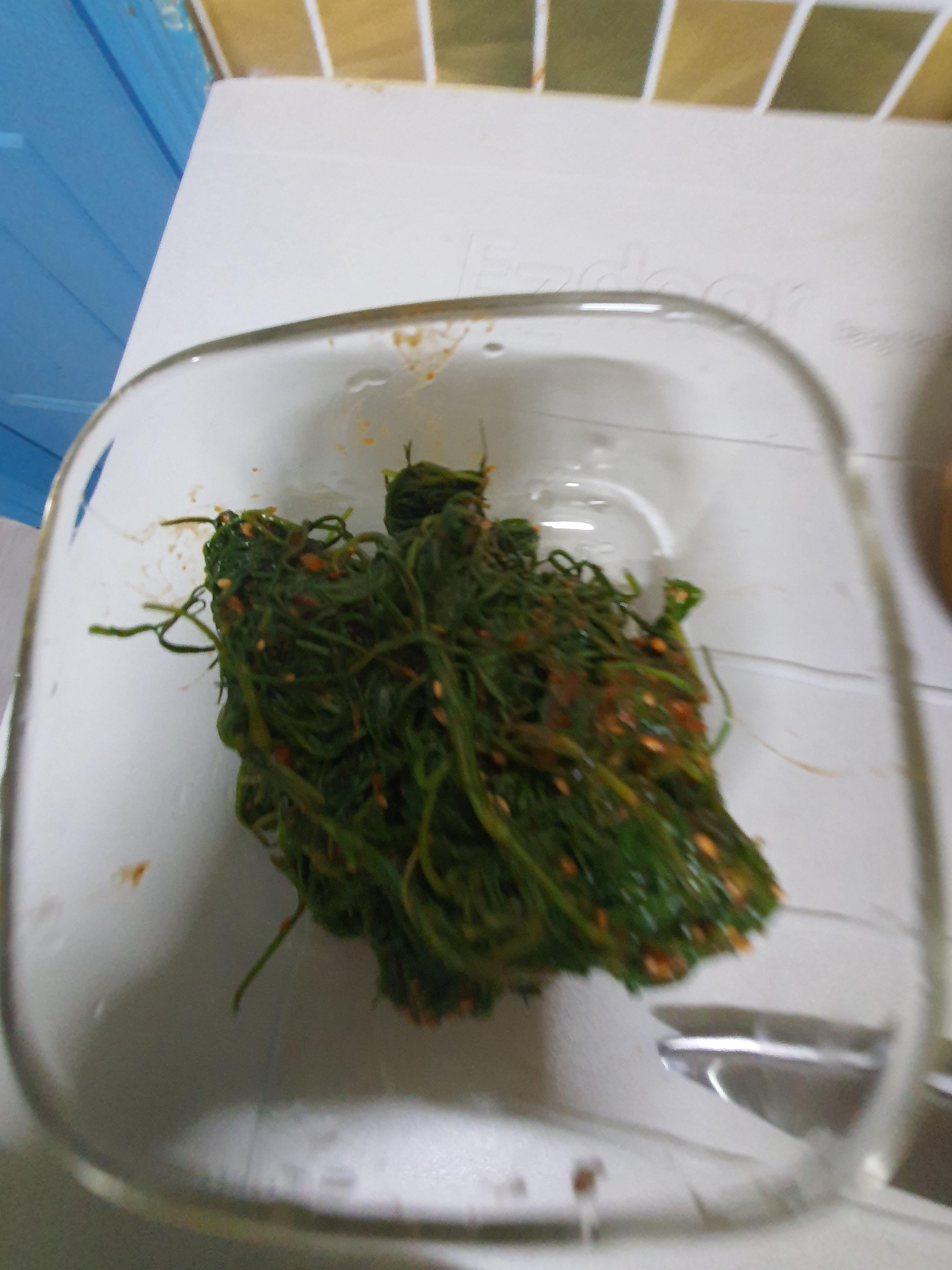 맛있게 만들어진 세발나물무침 먹는 일만 남았군요 저렴한 가격 단돈 천원으로 만들었으니 가성비 최고지요