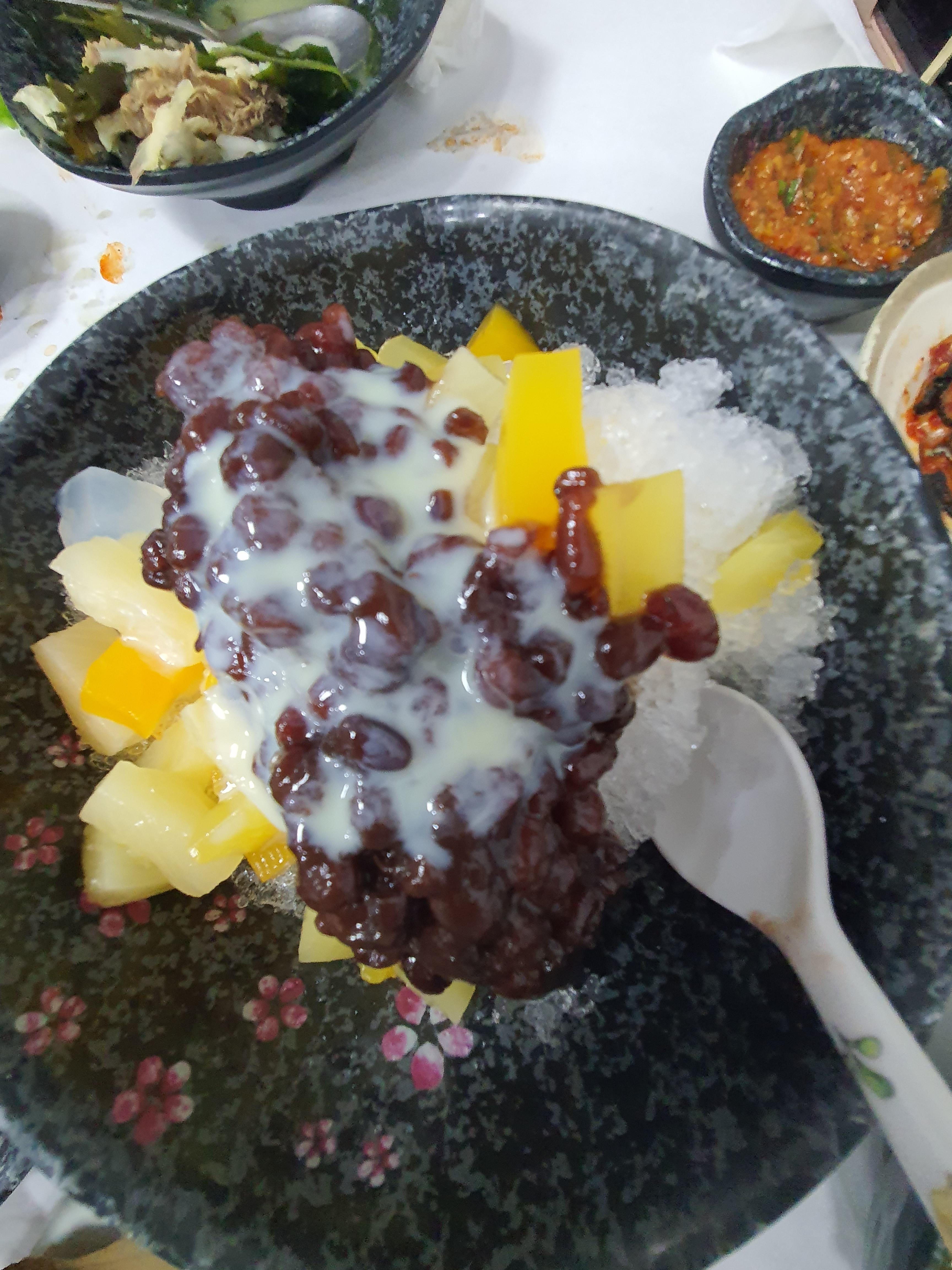 끝난게 끝이 아니네요 디저트로 팥빙수까지 나오는 쌍둥이횟집 대박이었습니다