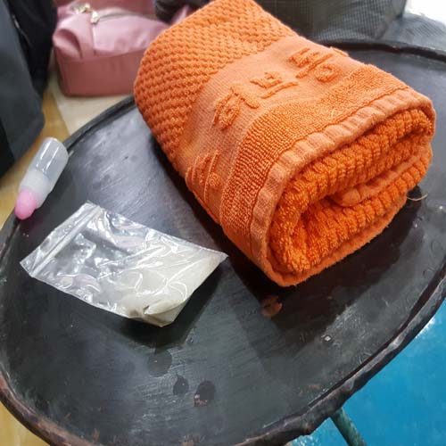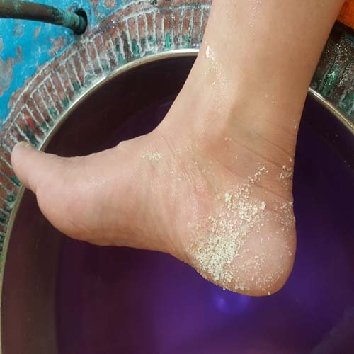 봉지 안에 든 게 장미 소금 직접 자기가 자기 발을 마사지해주는 곳