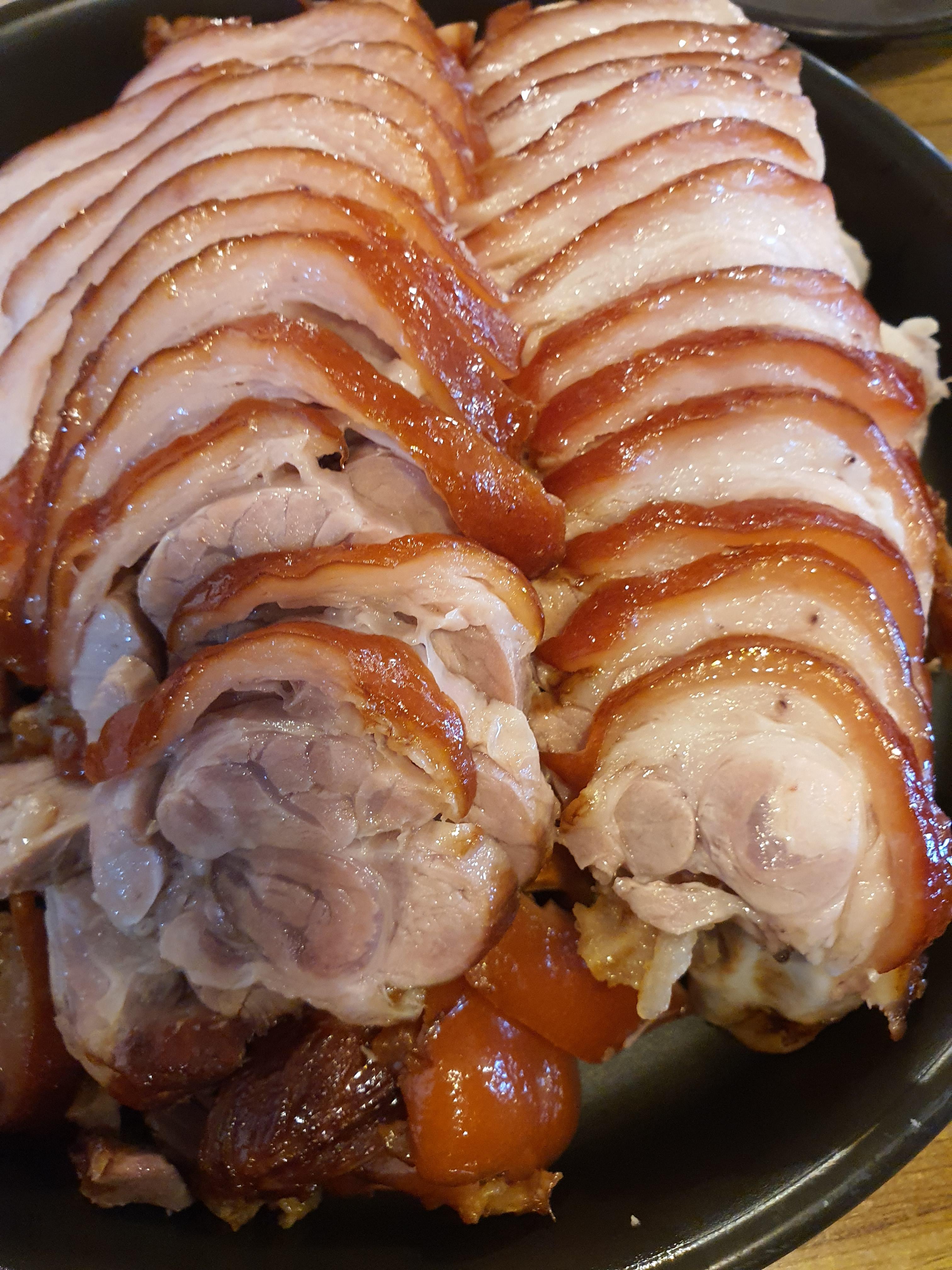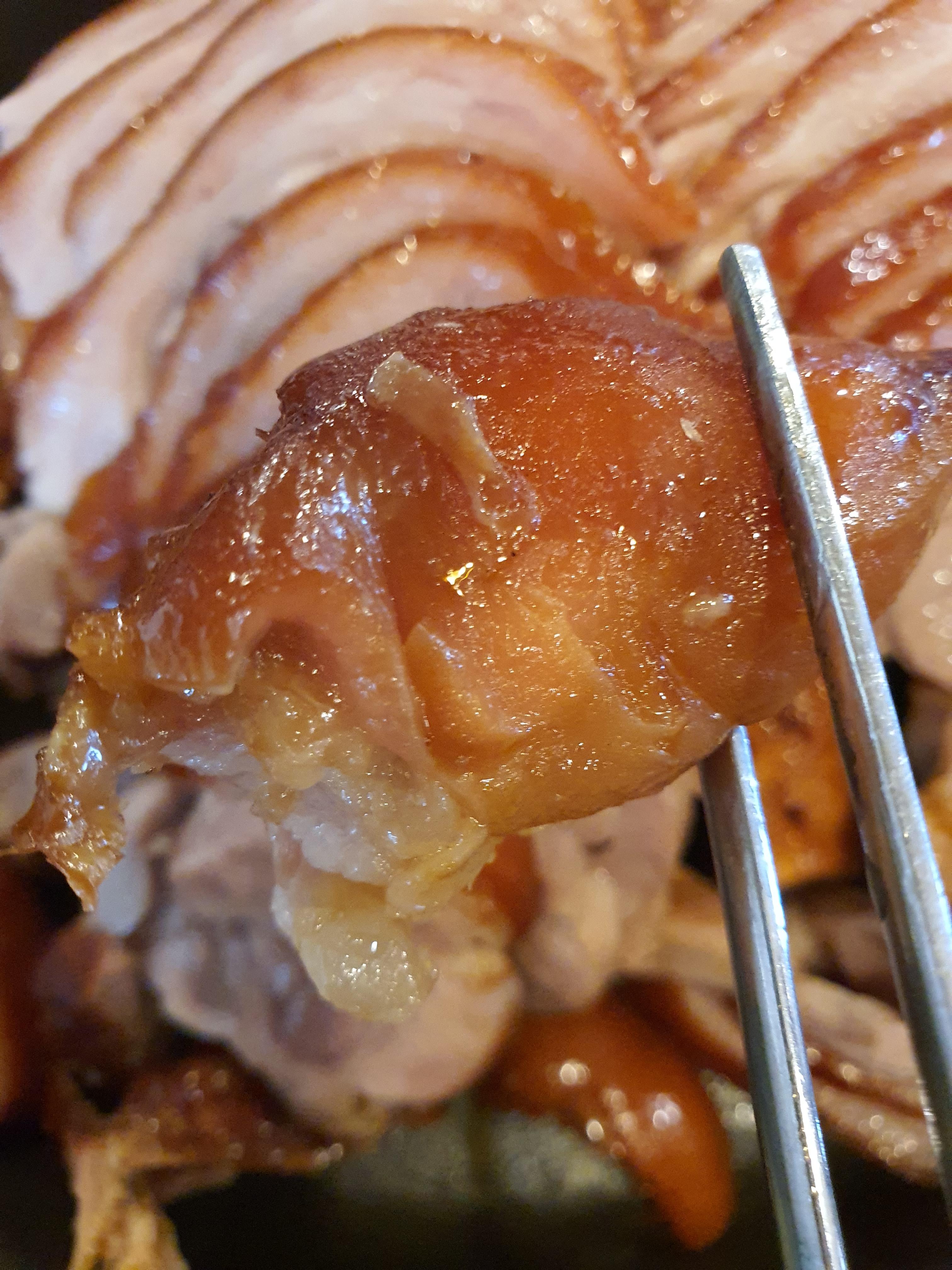 앞다리쪽으로 주문 막 썰어 나온 족발 윤기가 자르르 군침 도는군요
