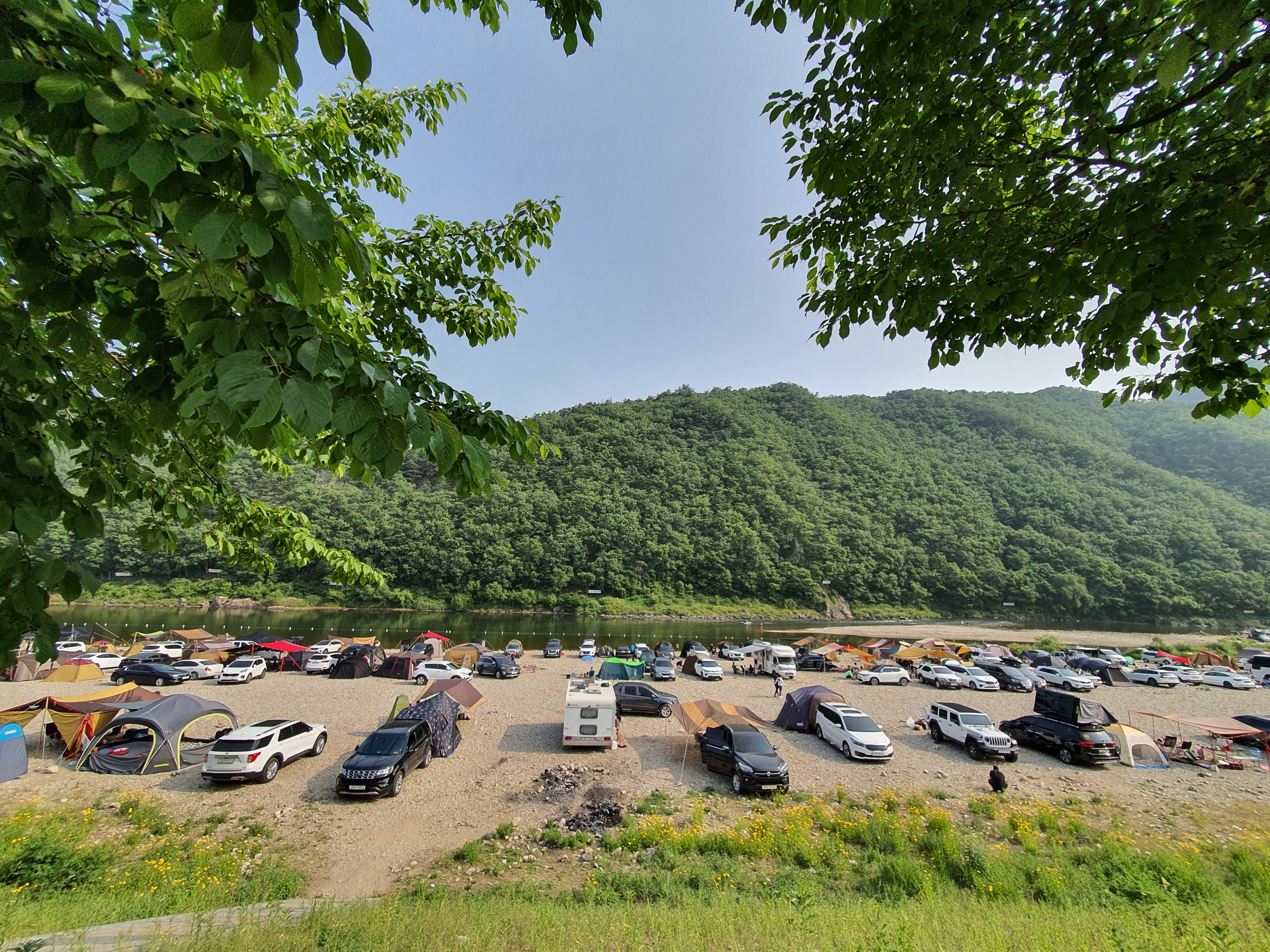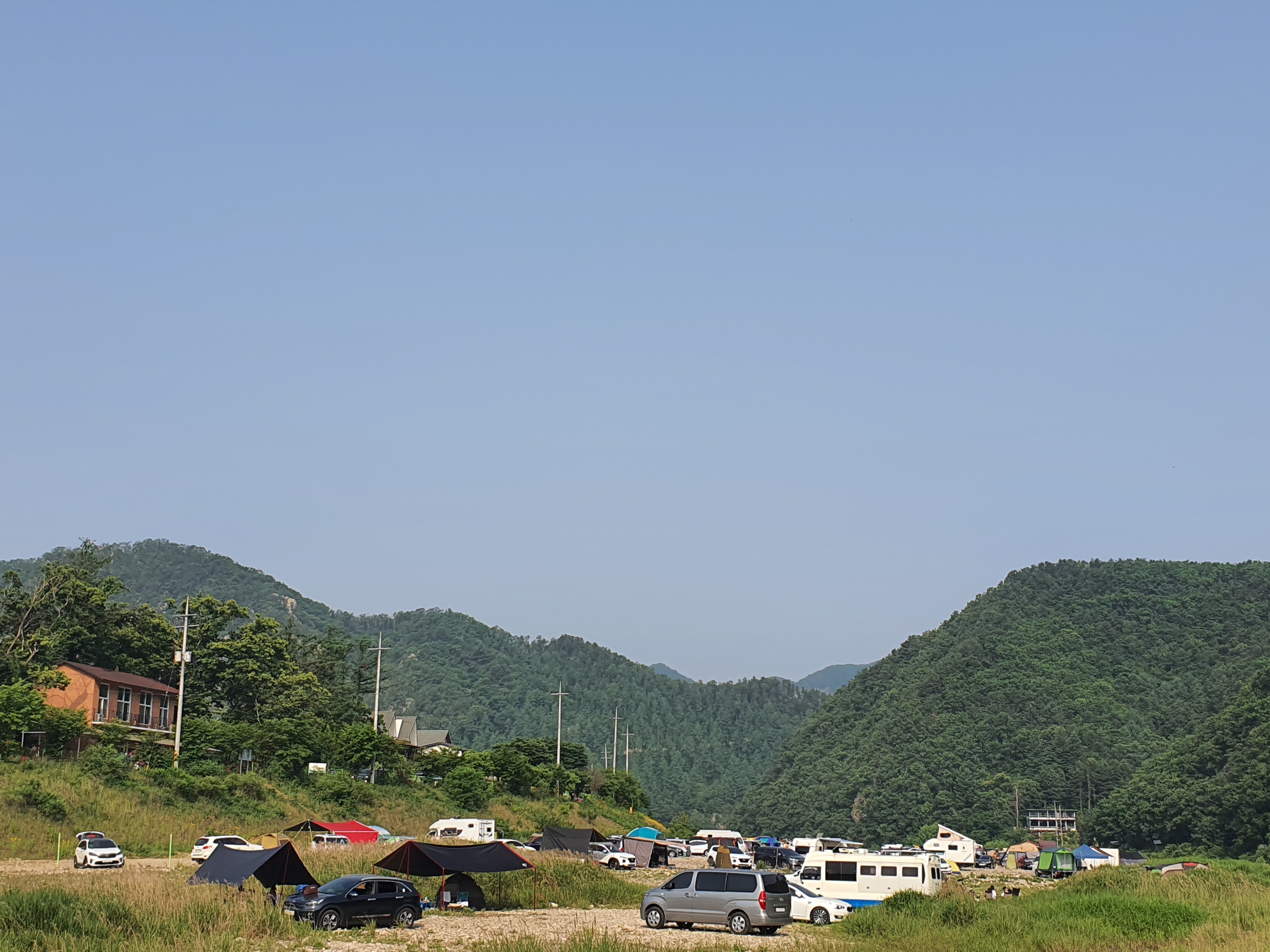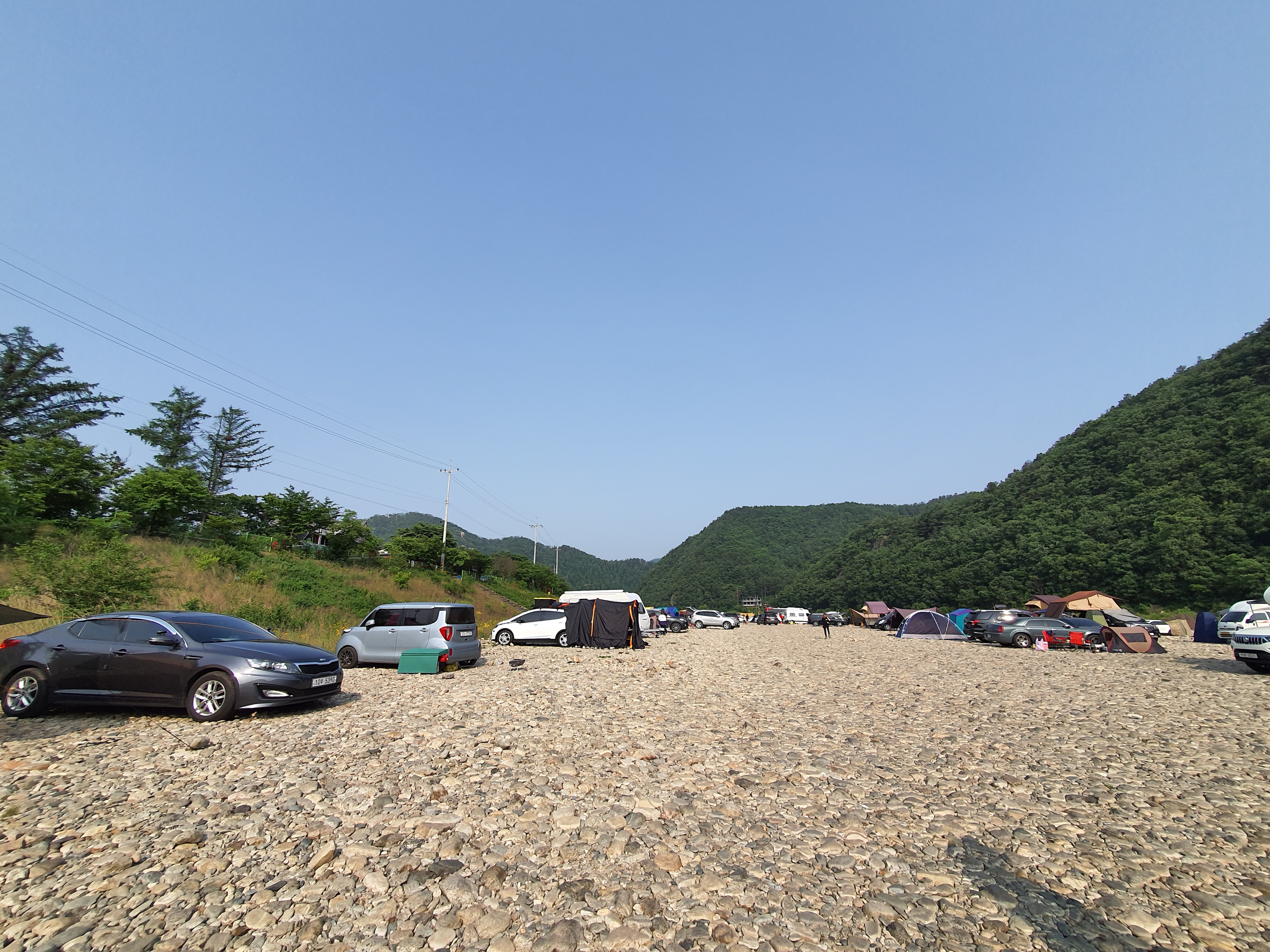 홍천 모곡 유원지는 바라보고 있는 보리울 무료 캠핑장